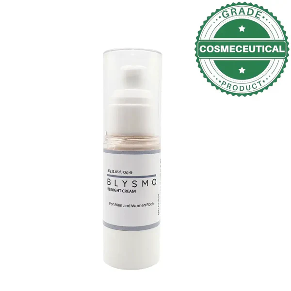 BLYSMO BB Night Cream is a multi-tasking skincare solution for everyone, promoting a more even-toned and radiant complexion overnight. It goes beyond basic moisturization, offering a powerful formula for effortless nighttime beauty.